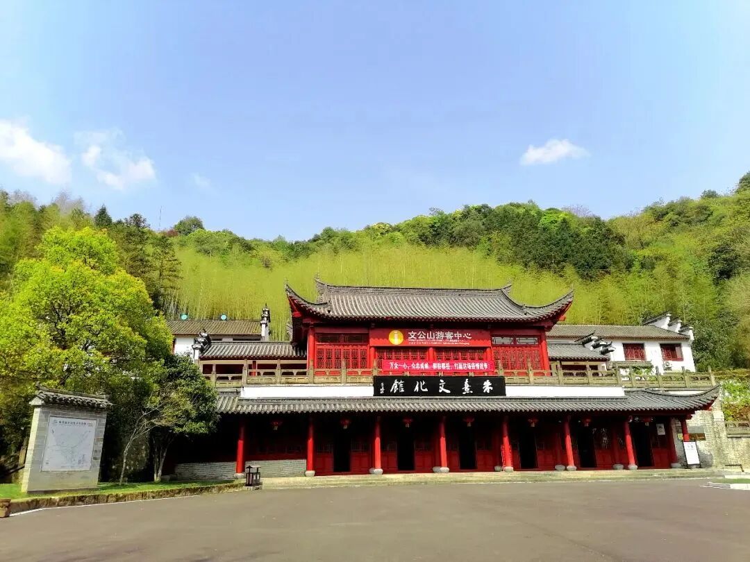 文公山原名“九老芙蓉山”。一代理学大师朱熹于南宋绍兴二十年(公元1150年),回乡省亲时亲手在其祖墓周围按八卦布局栽植了24棵杉树。历经八百多年的风雨,现存16棵,其中最高的38.7米,最粗者胸围3.43米,有“江南古杉王群”之誉。嘉定二年(1209年)宋宁宗谥朱熹为“文公”,后人故将山名改为文公山。文公山也因此闻名遐迩。