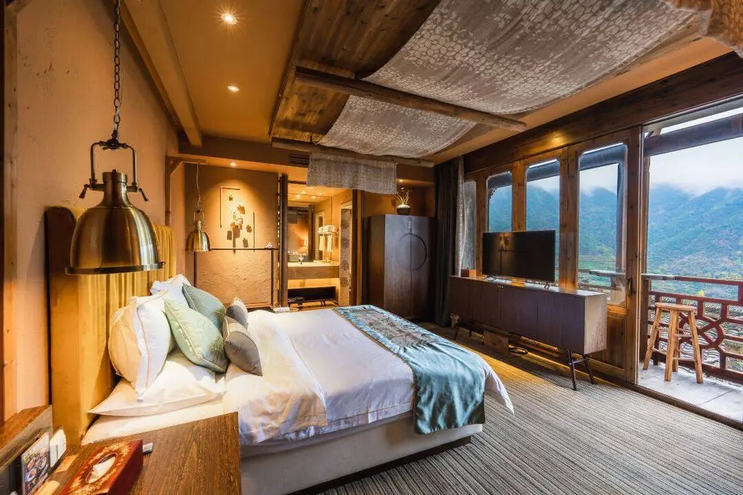 💯景区内目前有三个酒店,天街酒店、晒秋美宿,倚山居,分别对应低中高档,天街酒店更优惠,倚山居💰高,但是包含双人早餐和门票索道也不错