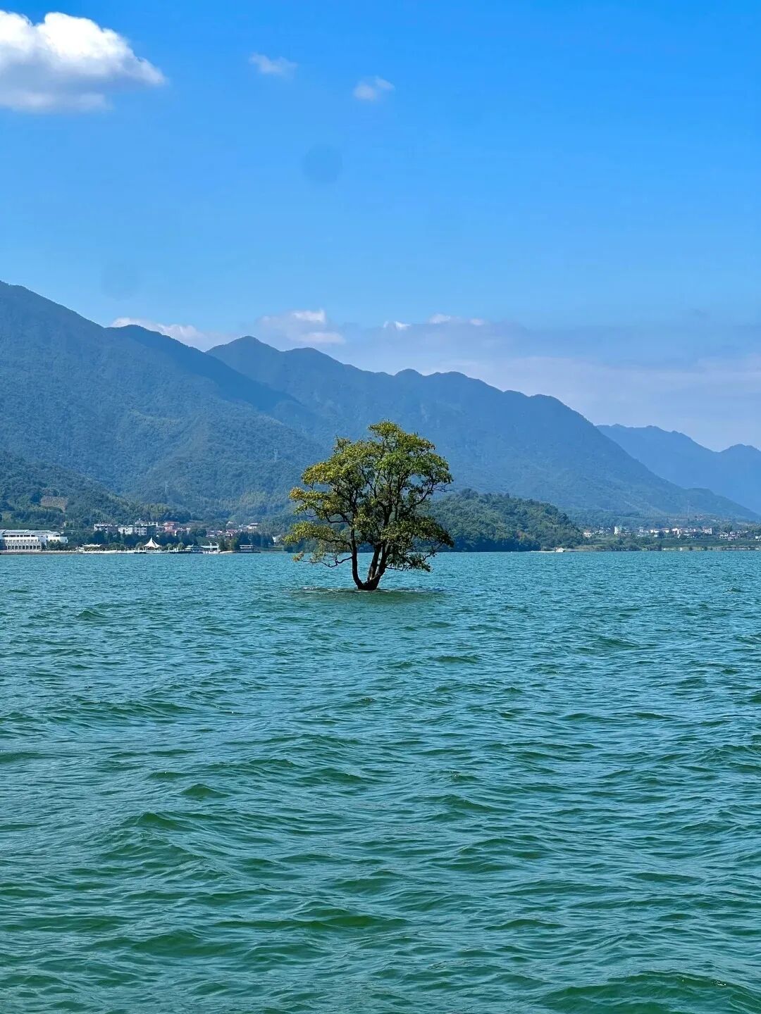 而其中最引人注目的打卡点 ——“沧海一树”,一棵孤独的树屹立在澄澈湖水环绕的小岛上 ,无论四季更迭,它都静静守望,遗世独立。