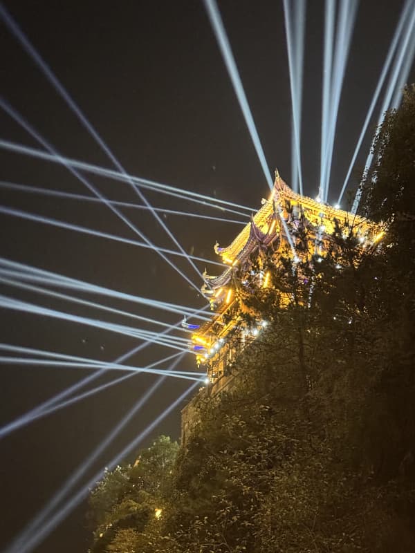 ● 揽月桥:位于悬崖栈道上的亭台楼阁夜景非常美,灯笼亮起后更是别有一番韵味。
