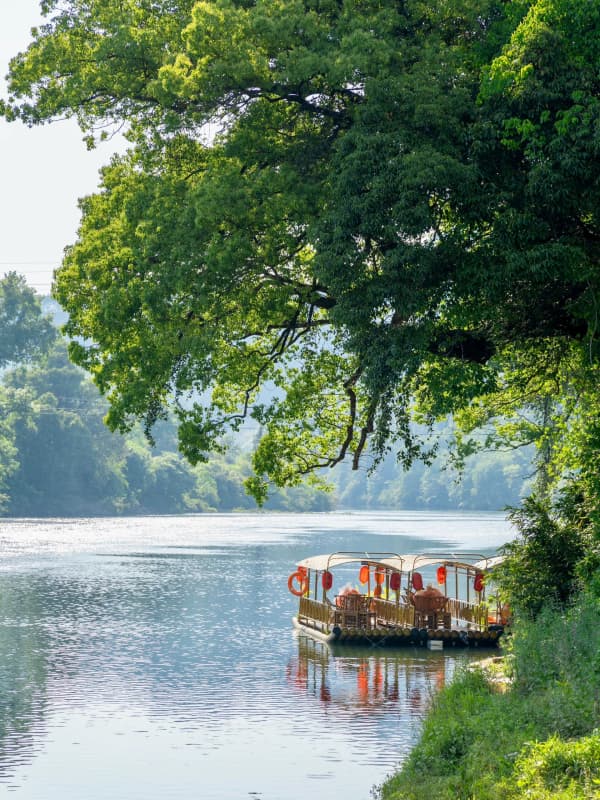汪口村几乎没什么商业化,一条主巷、一条江就是最主要的游览路线,乘坐这里的竹筏能够欣赏宽阔的江面、岸边的村子和山林🍃,空气清新~
