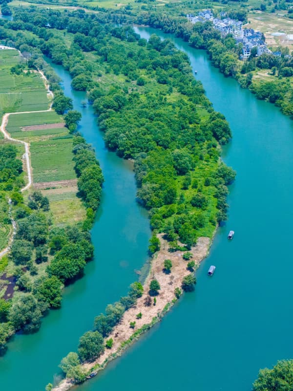 因河中间的岛屿像弯弯的🌙,所以这里被称作月亮湾,乘坐竹筏绕一圈“月亮岛”,沿途风景很优美~