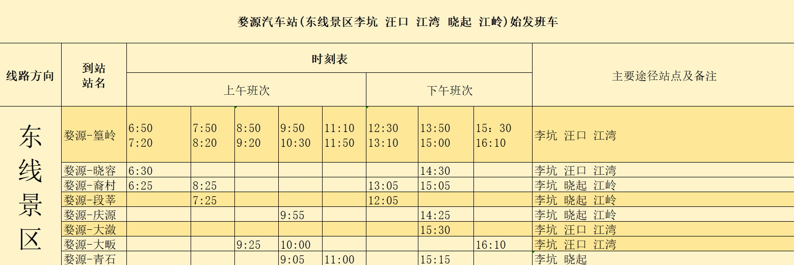 具体发车时间可能因季节和当天客流量有所调整,上车后及下车前一定要咨询司机最晚班车时间,避免错过末班车无法返程。沿途停靠点较多,旅程时间相对较长,要合理安排行程。自驾更方便哦~(班次时间请持续关注:“景村公交资讯”微信公众号,或致电0793-7200123咨询)。