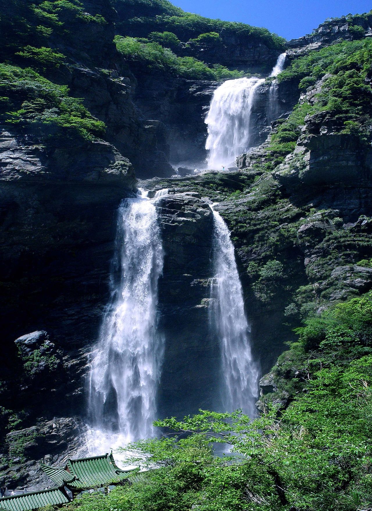 三叠泉:“不到三叠泉,不算庐山客”,瀑布分三级,气势磅礴。