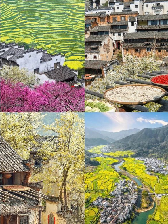 中国最美乡村,春季油菜花海,秋季晒秋景观,充满田园诗意。