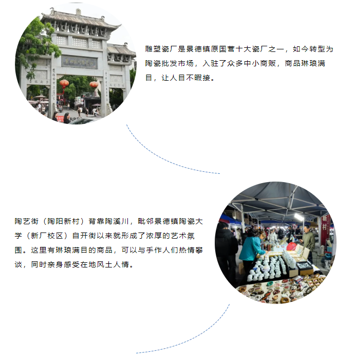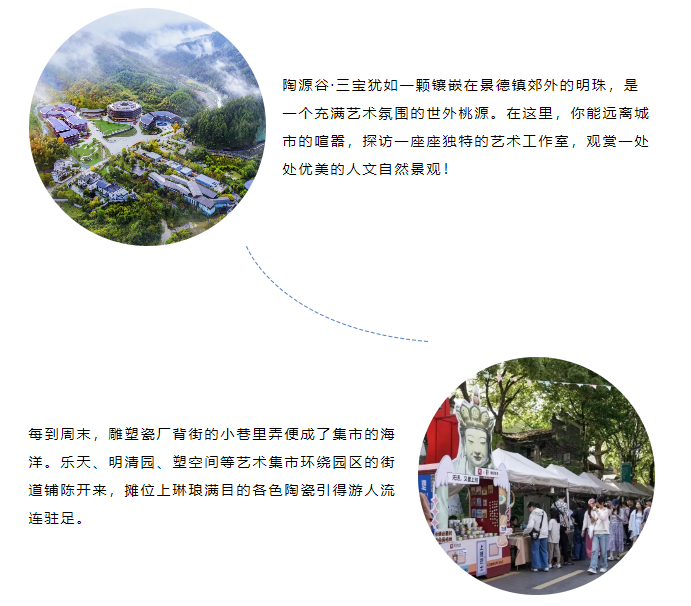 古窑民俗博览区(非遗技艺活态展演)——名坊园——陶源谷·三宝旅游度假区(一夕风物美学空间)——雕塑瓷厂(青年陶艺家快闪市集)