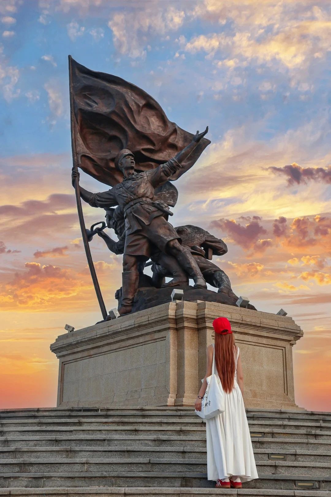 在建军雕塑广场拍照时,傍晚的光线柔和,能让雕塑更具层次感。拍摄人物与雕塑合影时,可让人物自然融入场景,展现与历史的对话感。也可聚焦雕塑的细节,如战士们紧握武器的手、坚毅的眼神等,捕捉历史的厚重感。