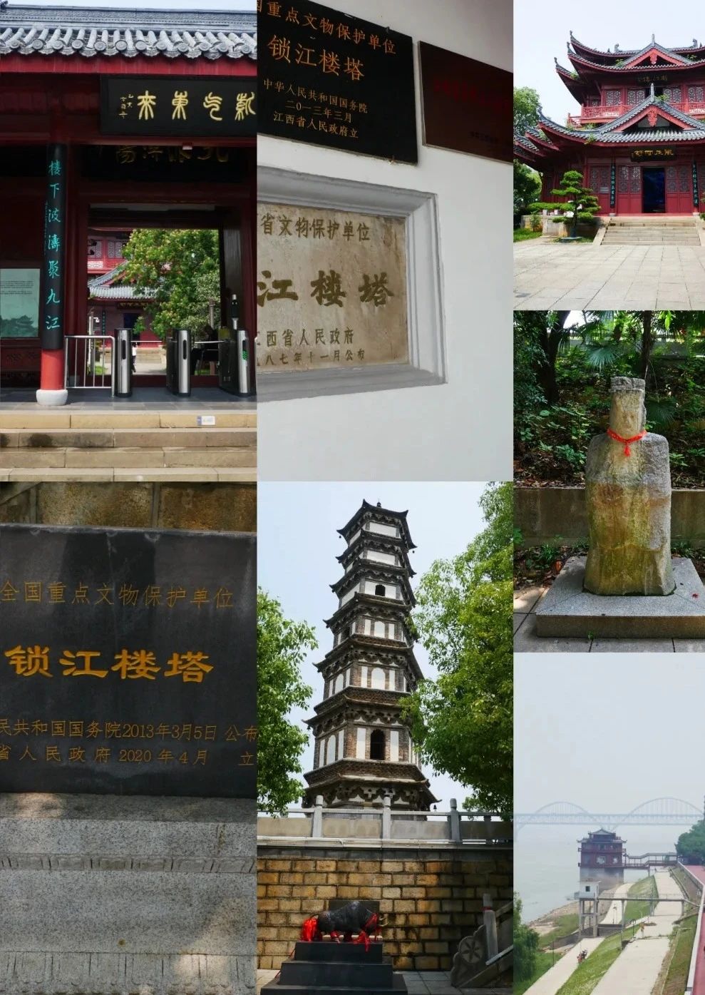 与浔阳楼、琵琶亭并立江畔,构成浔阳江头的金三角。始建于明代,原为镇锁江妖水怪、保佑一方平安的风水塔。现存楼塔为近代重建,但保留了古塔遗风。登塔环顾,长江奔流,九江古城风貌与现代桥梁交相辉映。它与浔阳楼、琵琶亭共同构成了长江岸边一道独特的人文风景线。