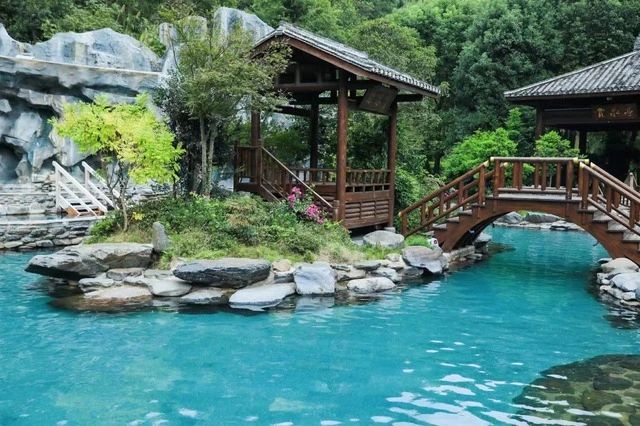 位于中国长寿之乡江西铜鼓县,景区森林覆盖率高达96%,空气中负氧离子含量每立方厘米7万个,年平均气温16摄氏度,日出水量达3000吨,出水温度高达72°C,富含硫、钾、钠、钙等多种有益健康的微量元素,是冬泡温泉夏避暑的旅游胜地。